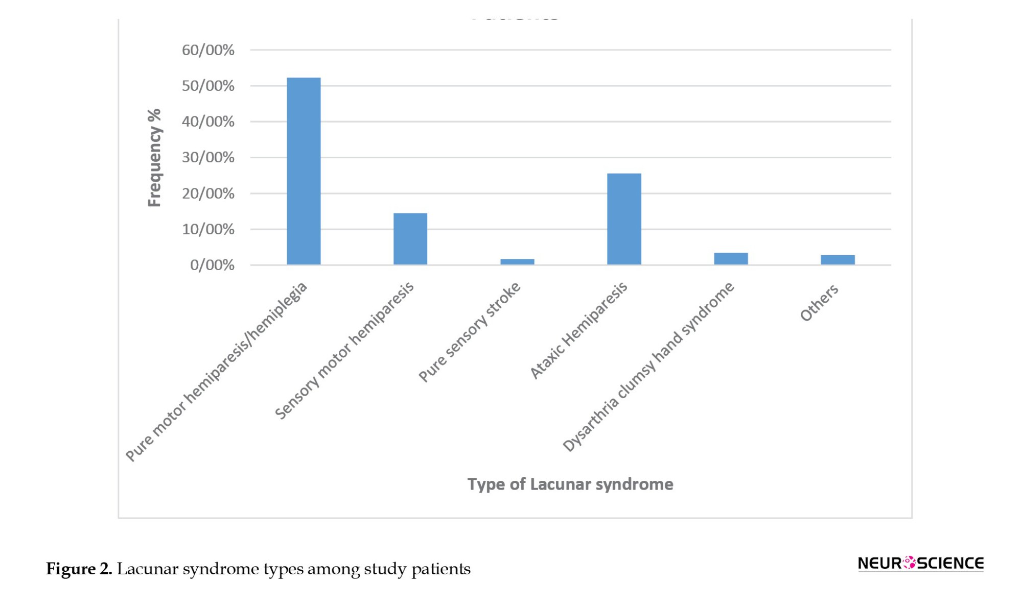 This research was a prospective, single-center study conducted at the Department of Neurology at our institute over 12 months, from December 2018 to December 2019. Patients with clinically evident acute cerebral infarction (CI) or TIA who had a lacunar stroke were enrolled in the study. Lacunar infarctions are defined as small subcortical infarcts with a size less than 15 mm in diameter seen in the deep cerebral white matter, basal ganglia, or pons, presumed to result from the occlusion of a single small perforating artery supplying the subcortical areas of the brain, caused by occlusion of a penetrating artery from a large cerebral artery, most commonly from the circle of Willis (Feekes et al., 2005).