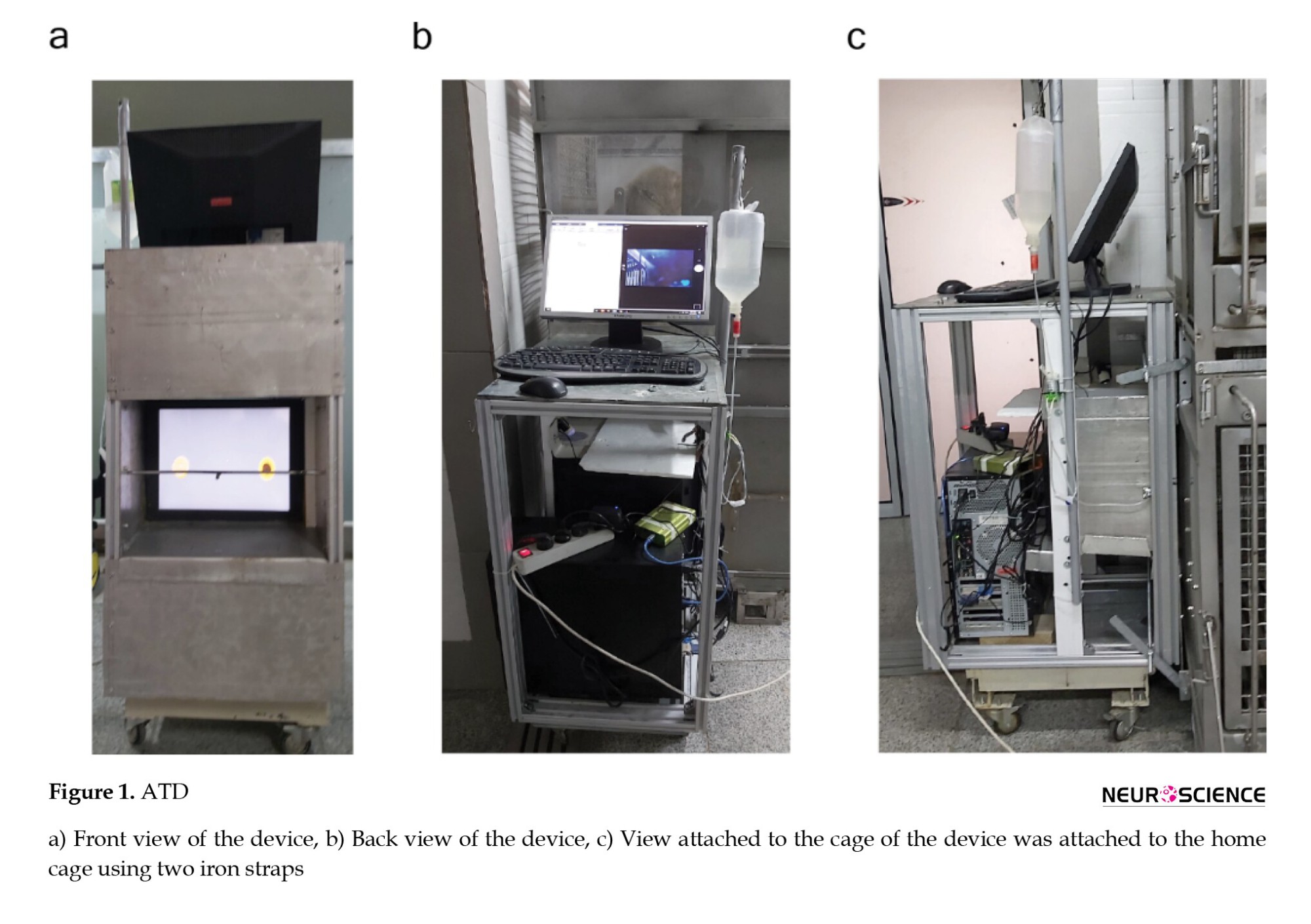 To effortlessly transport all the mentioned components, we required a frame equipped with wheel bases capable of accommodating and securing all these pieces of equipment. This frame serves as a mobile platform for easy movement and handling. The device comprises three key components: The computer system, reward system, and remote-control units, all strategically arranged on an aluminum frame. The specially designed cage mounting frame boasts dimensions of 50×60×90 cm, providing a sturdy and compact foundation in the shape of a rectangular cube. Constructing this frame involved using four units of each size, totaling 16 components. To enhance convenience in handling, the aluminum frame is thoughtfully equipped with four wheels, facilitating seamless portability. This design feature not only allows for effortless transportation but also ensures the device can be easily maneuvered and used in various locations, adding a practical and flexible dimension to its application.