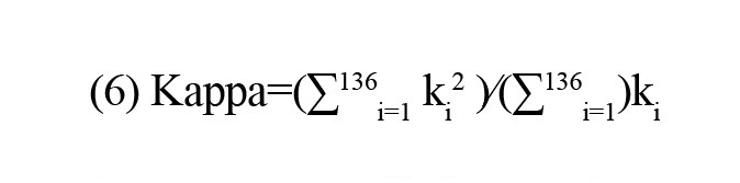 Kappa: This metric quantifies the breadth of the degree distribution. This metric can be formulated as