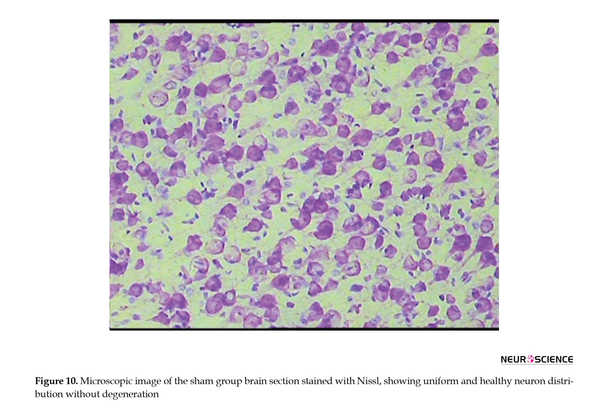 ● In the sham group, neurons exhibited healthy nuclei and well-defined cytoplasm. No neuronal degeneration or loss was observed. The distribution of neurons was uniform, with no signs of damage.